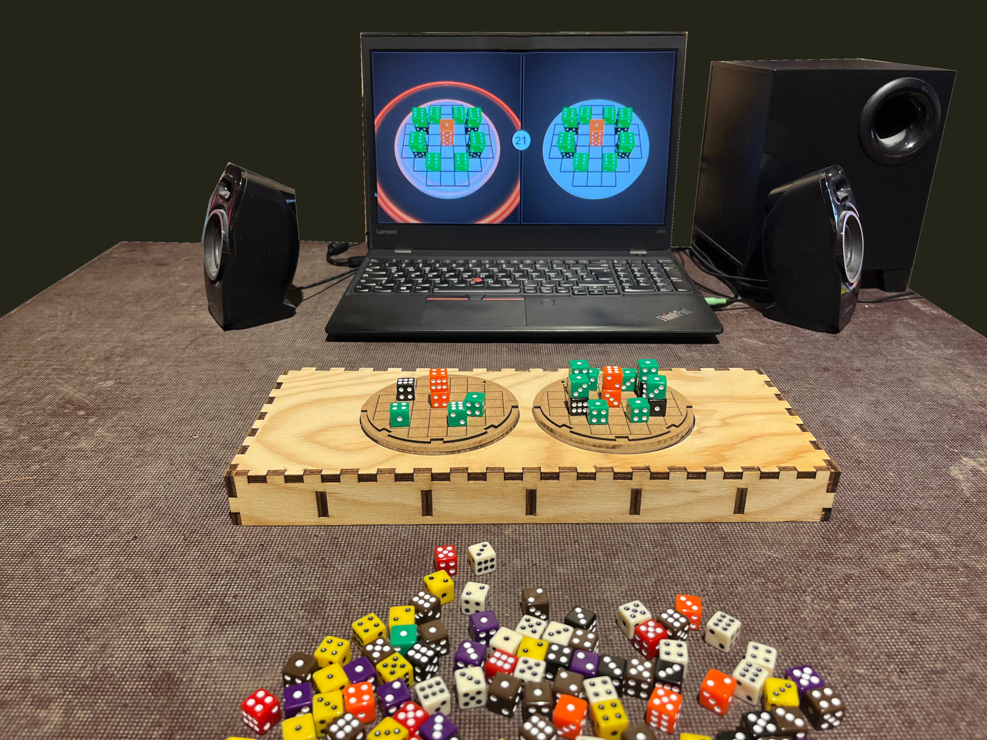 In this dexterity-based game you stack dice in a prescribed pattern, while trying to avoid to trigger a switch in the groud plate.